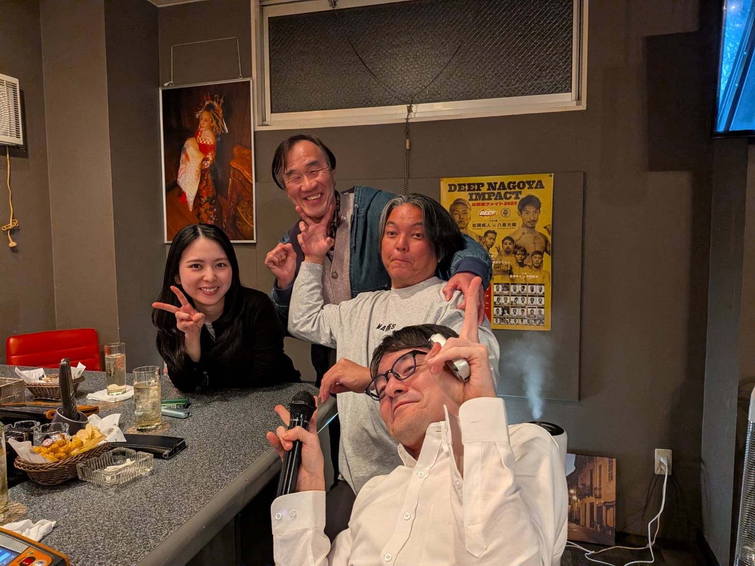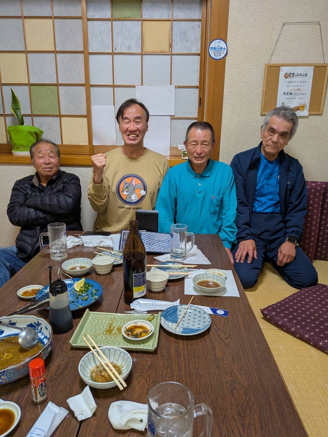 1月8日、国際武道大学准教授で空手道部監督の荒川尊祐先生(向かって右奥)、宮崎産業経営大学空手道部監督の渡辺浩二先生、荒川先生の同級生の佐藤さんと飲みました。みんな話が面白く、エネルギーに満ちあふれていました。俺も負けちゃおれん!「人生はいつだって、これから」