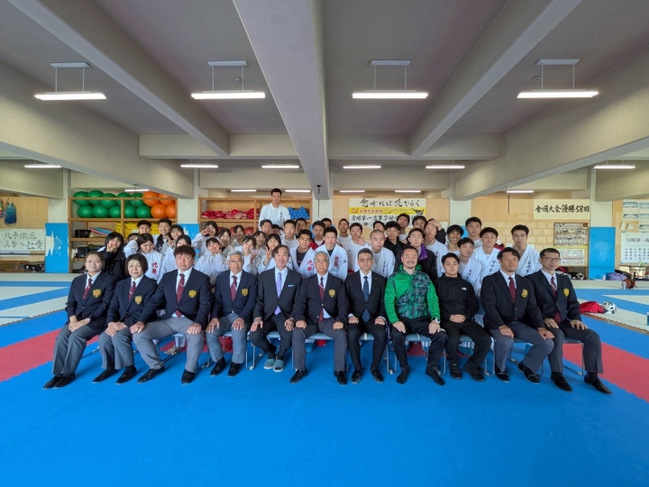 3月7、8日、東京から加藤英夫講師をお招きして、組手審判Aランクセミナーを宮崎第一高校体育館で行いました。8日は熊本県の九州学院高校も組手試合を行いました。最後は全員で記念撮影。